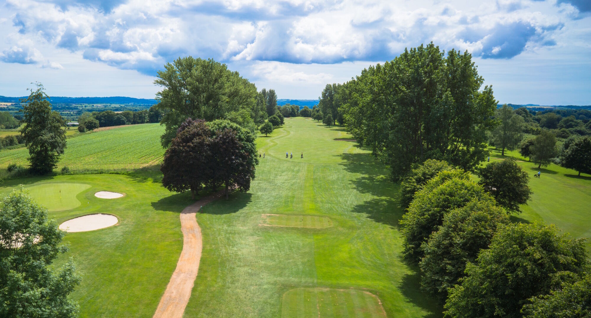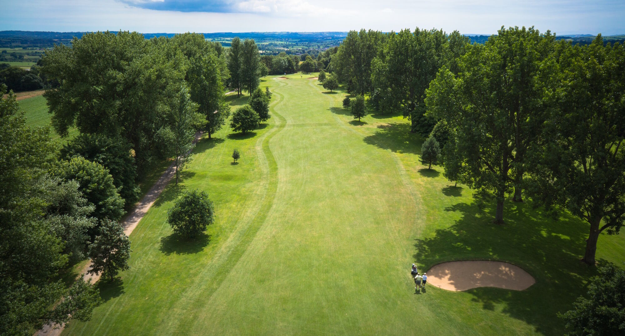 A straight, flat, long par 5 with out-of-bounds left and a line of tall established trees down the right.