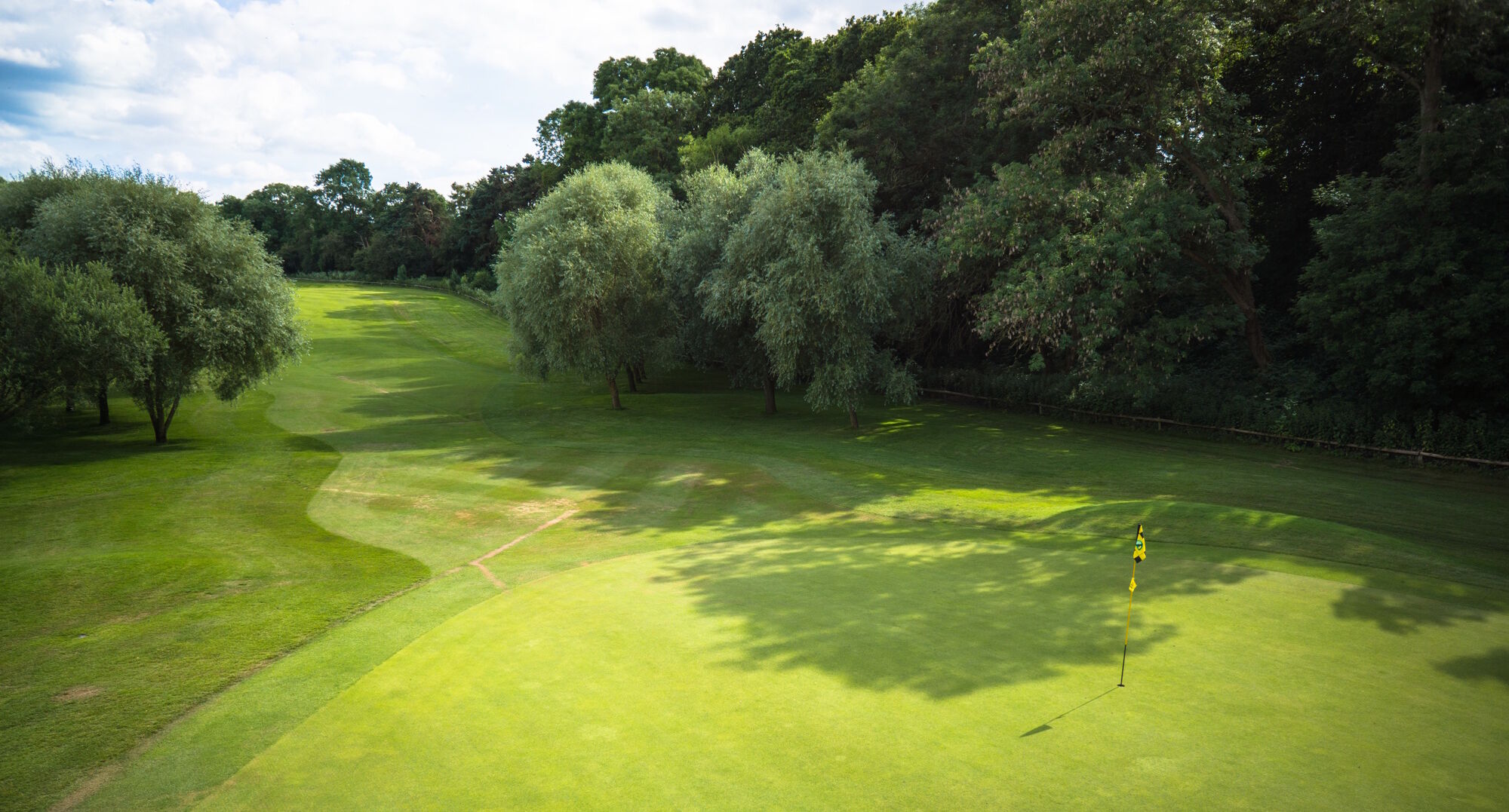 When you get down there, the green slopes strongly from back to front, making it quite easy to pitch the ball in and stop it quickly.